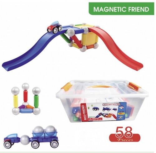 ألعاب المغناطيس 58 قطعة هي وسيلة رائعة للأطفال لاستكشاف مفهوم المغناطيس والتعلم عن ظواهر التنافر والتجاذب بطريقة ممتعة. تتيح اللعبة للأطفال بناء أشكال مبتكرة وتوسيع خيالهم من خلال القطع المغناطيسية المرفقة.