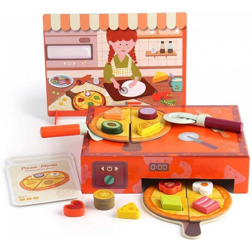 • يمكن للأطفال أن يبتكروا فكرة إدارة متجر بيتزا لأنه يأتي كصانع بيتزا صغير وفرن. يتناوب الوالدين أو معلمي الصف على القدوم مثل العملاء وتلقي الطلبات. يقوم (الشيف / الكاشير) باختيار الإضافات ووضع البيتزا في الفرن ، ويقدم البيتزا للعملاء الذين يدفعون بالقطع النقدية تجربة واقعية للأعمار من 3 سنوات فما فوق.