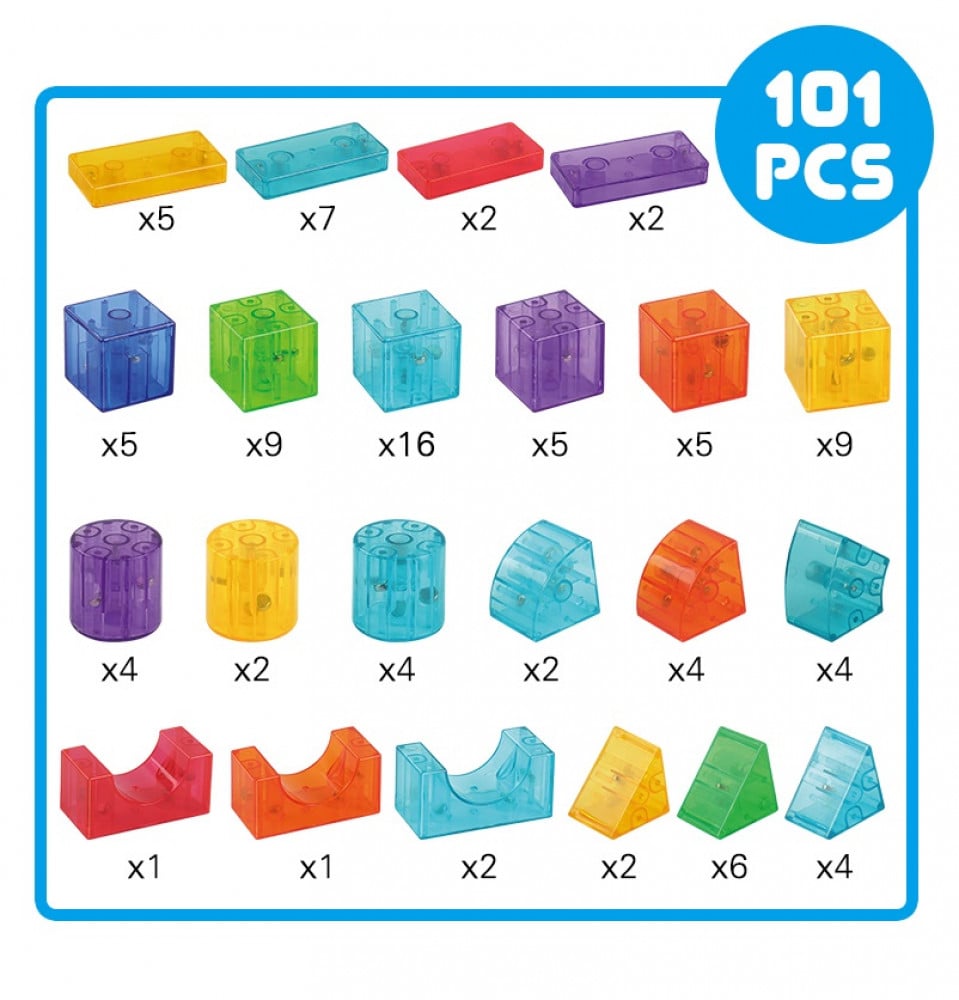 101 قطعة مغناطيسية بألوان زاهية وأشكال متنوعة.